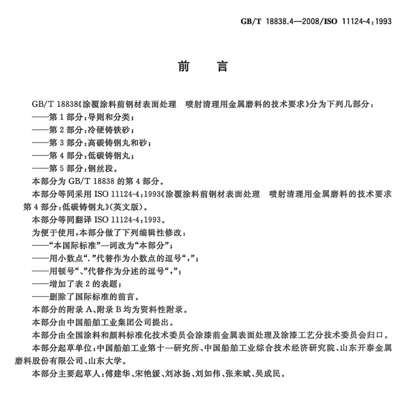 技術(shù)資料下載:GBT 18838.4-2008 涂覆涂料前鋼材表面處理 噴射清理用金屬磨料的技術(shù)要求 低碳鑄鋼丸.pdf